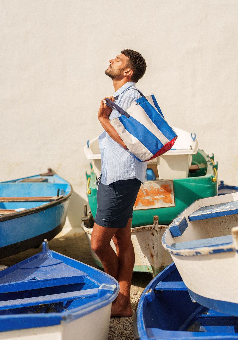 Le vestiaire s’articule autour d’une palette essentielle, puisée dans le bleu, le blanc et le rouge, déclinée en camaïeux vibrants. Du Rouge Pigment au Bleu Flot, relevés de touches de bleu Ciel et Nuance, les couleurs dialoguent entre elles avec fluidité, comme en perpétuel mouvement.