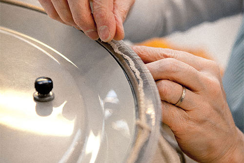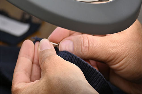 Avec leurs doigts de fées, les raccoutreuses sont les garantes de la qualité irréprochable de nos pulls. Elles corrigent la maille oubliée par la machine, retirent la fibre étrangère, perfectionnent la coudière...